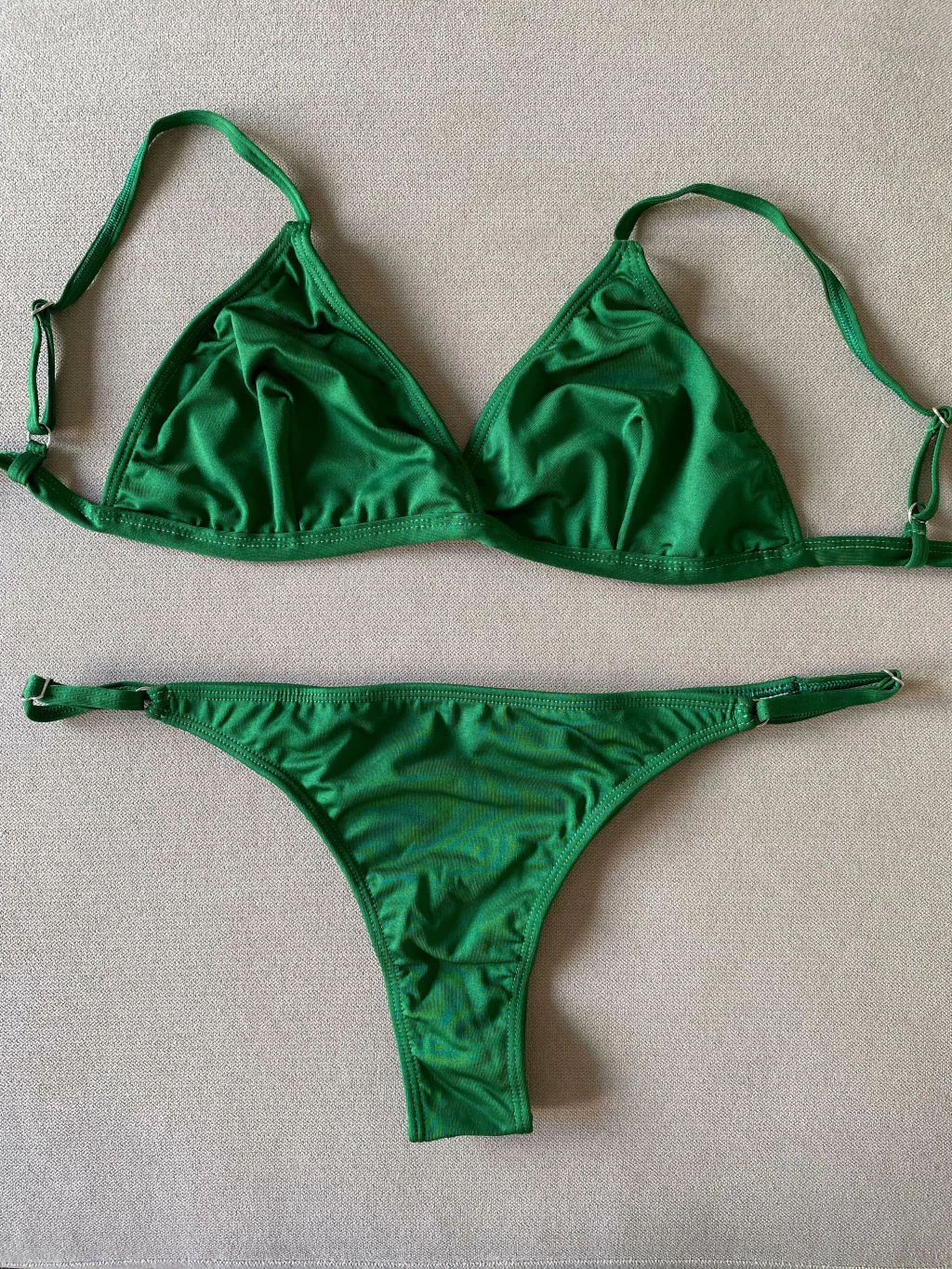 Bikini triangulito fijo y bombacha colaless con breteles regulables. Tiene abertura para agregar relleno/ almohadita en el corpiño.